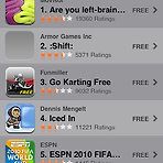 등록된지 얼마 지나지 않아서 무료게임 2위를 차지한 Shift 입니다. Shift는 기존 ARMOR에서개발한 플래쉬 게임을 아이팟용으로 컨버팅한 게임입니다. 레벨 디자인이나 규칙은 기존의 플래쉬 게임과 모두 같습니다. 아이팟 버전에는 조작방법이 3가지가 존재합니다. 1. 기울기를 통한 색 바꾸기 2. 아이팟 뒤집기를 이용한 색 바꾸기 3. 화면상단에 쉬프트 버튼을 통한 색 바꾸기 개인적으로는 1번 방법이 가장 편했습니다.. 플래쉬 게임으로는 재미있게 즐겼는데 아이팟으로 게임을 플래이 해보니까 조작이 약간 불편한점이 걸리는 게임입니다